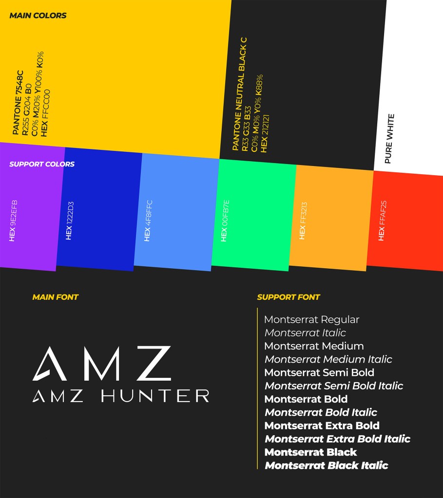 Como lead designer do Grupo Fabio Costa Online por 4 anos, tive a grata oportunidade de recriar toda a identidade visual da empresa. Foi uma rara ocasião de criar uma marca que realmente representasse, modernizasse e consolidasse um novo momento. O AMZ Hunter estava em plena expansão e necessitava organizar e padronizar melhor sua comunicação interna e externa.