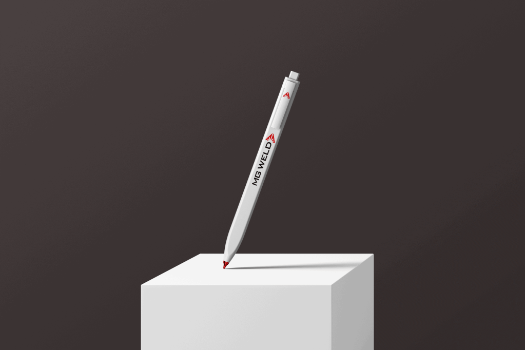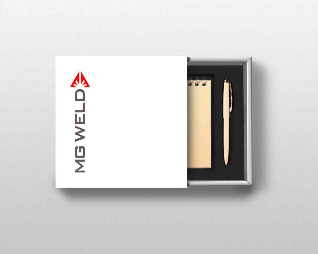 Uma identidade visual minimalista focada no símbolo foi criada para ser de fácil lembrança para seus clientes, procurando crescer o engajamento e diferenciar-se da concorrência. Pelo mercado de consumíveis de solda ser muito competitivo, a MG WELD se destaca pelo esforço de ser uma empresa companheira de seu público, este muito abrangente, atendendo o simples serralheiro – vitorioso em seu pequeno negócio – e as grandes empresas.